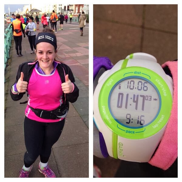After running 8.5miles for a couple of weeks during the 1hr30 long runs with RunBrighton, this morning’s outing was 1hr45, starting at the Hilton Metropole in Brighton and out and back to Rottingdean over the chalk cliffs. The first half of the run was into some immense headwind, which, combined with the hills was interesting to say the least!