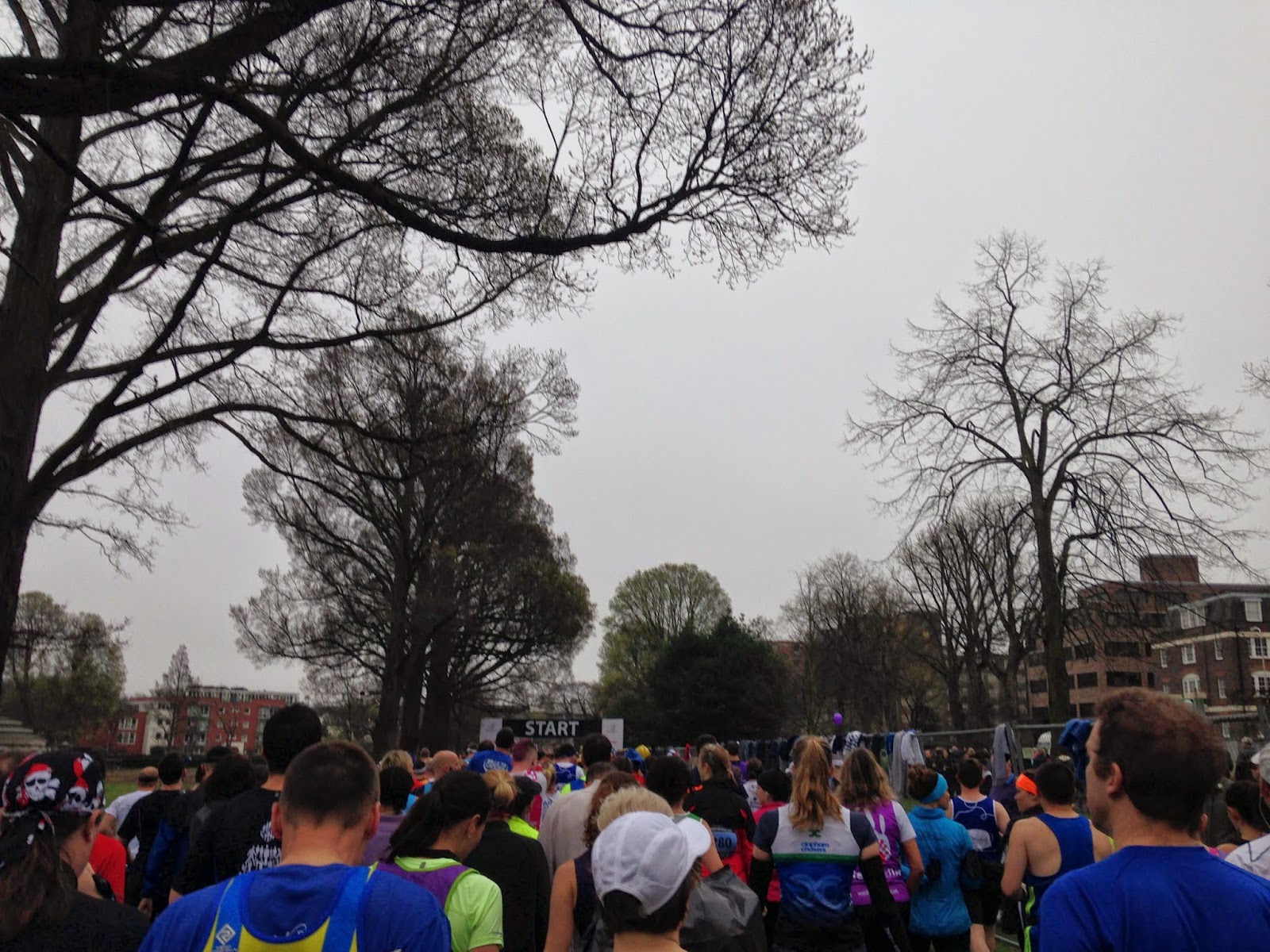 I let go of the terror and was ready to take on the marathon. It’s a strange feeling, acceptance. There’s nothing more you can do so you just let it happen, and it’s really liberating. I wasn’t even that nervous getting into Preston Park before the start, and luckily managed to find my RunBrighton running buddy Jodie at the baggage lorries. We rushed over to the blue coral to start warming up and before we knew it we were shuffling over the line. (I missed out on a high-five from Paula Radcliffe though!!).