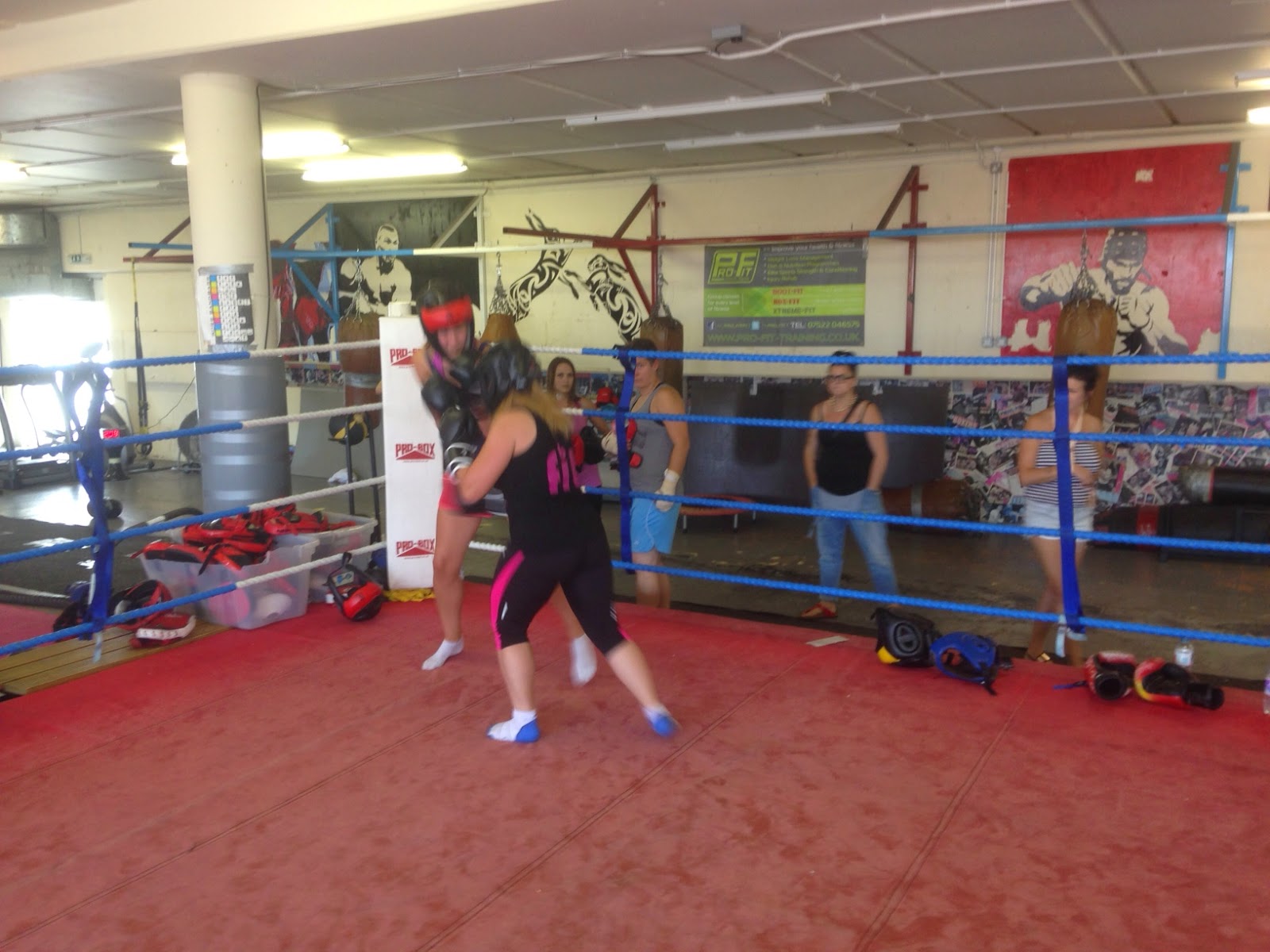 It didn’t hurt though, which was surprising. She got me a few times in the head and it didn’t hurt at all, just shocked me a bit. After lots of praise from the trainers and other girls watching we both left that session full of confidence and excitement about the whole thing.