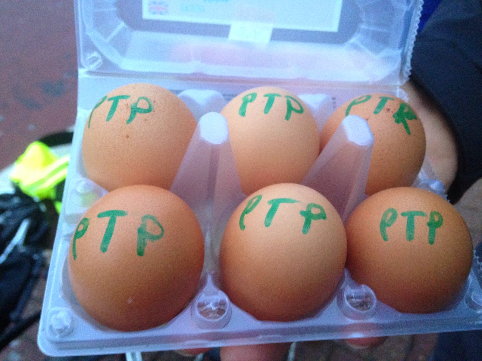 I was entrusted with what would’ve been the baton for the full relay – six raw eggs still in their box – our task was to get the eggs and all of us safely to the finish line at Eastbourne Pier.