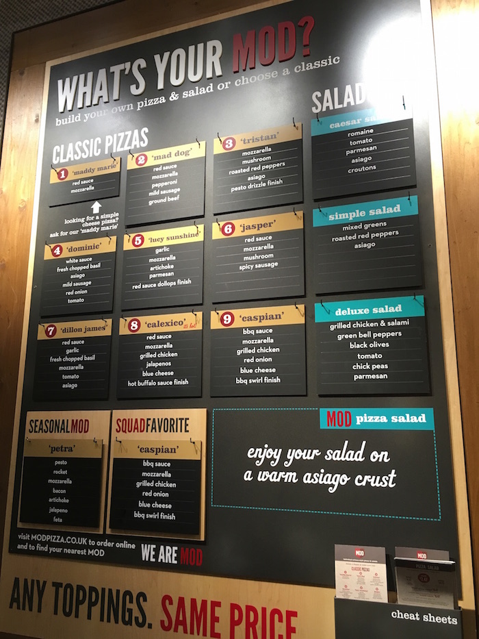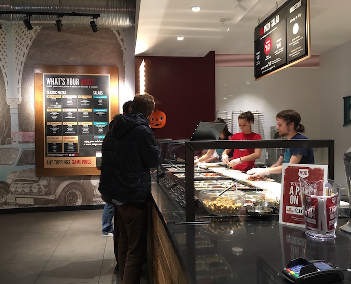 When I got an invite to try out new Brighton restaurant MOD Pizza last Saturday I obviously jumped at the chance for some epic pre-long run fuelling. Situated down at the Marina, underneath the block of brand new (and no doubt unaffordable) flats that have just been finished, MOD offers a casual and comfy setting within which to stuff one’s face.