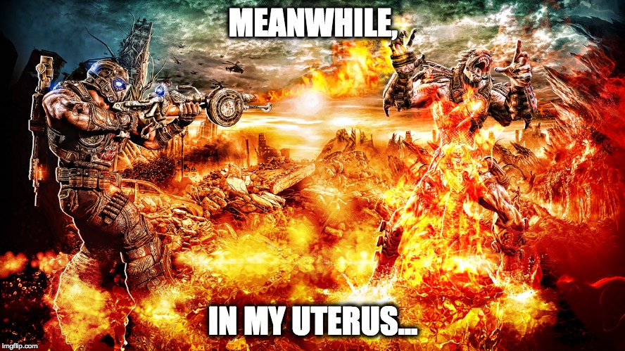 A few days before, the stress, tension, mood swings and general anger and bitterness at everything swoops in and buggers off on loop like a seagull snatching a child’s ice cream. One minute you’re fine, the next you’re crying into the biscuit tin, or shouting at the kettle, or self-combusting over other people’s supposed idiocy when they just. don’t. get. it. man.
